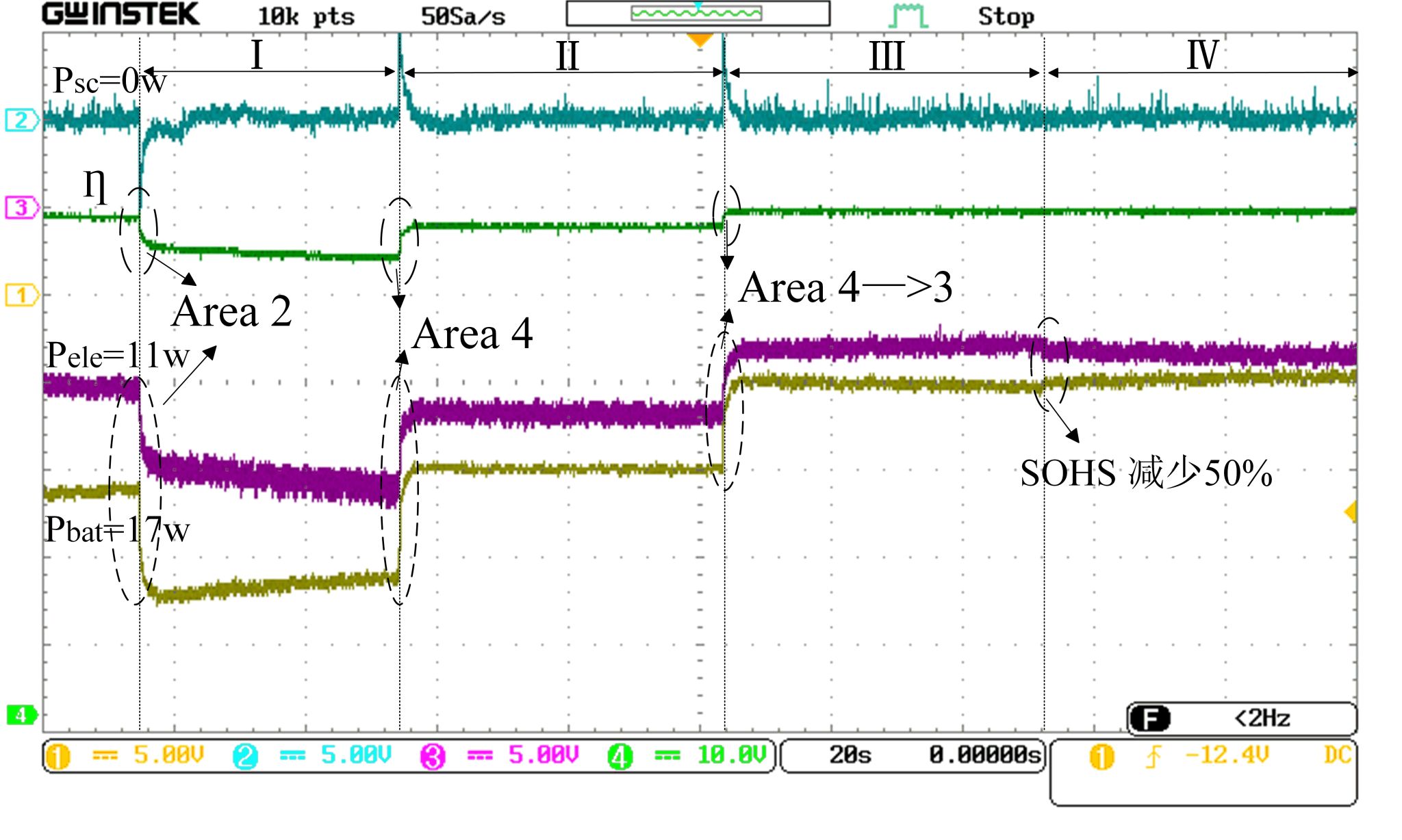 如图2所示,该方法通过有效权重因子延长铅酸电池寿命,同时引入双层模糊映射优化氢储能系统运行效率,确保PEM电解槽在安全且灵活的效率区间内工作。结果表明,该策略显著延缓电池在高SOC区域的运行时长,并提升了氢能系统的能效与安全性。通过硬件平台验证了控制策略的有效性,该策略可以延迟铅酸电池在高SOC区域工作时长,进而延长电池寿命。同时确保氢储能系统运行时的安全性,维持PEM电解槽能量转换效率工作在更加灵活的区域,如图3所示。